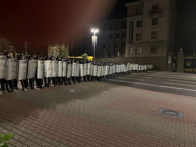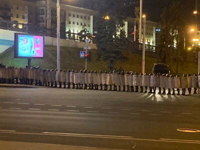 Днём начал пропадать интернет. Мы в обед переехали на съёмную квартиру в самом центре Минска. Вечером вышли на Зыбицкую покушать, уже в центре было много милиции. После 20:00 стали перекрывать различные проходы для людей. Так мы в поисках пути домой оказались неподалёку гостиницы "Беларусь".